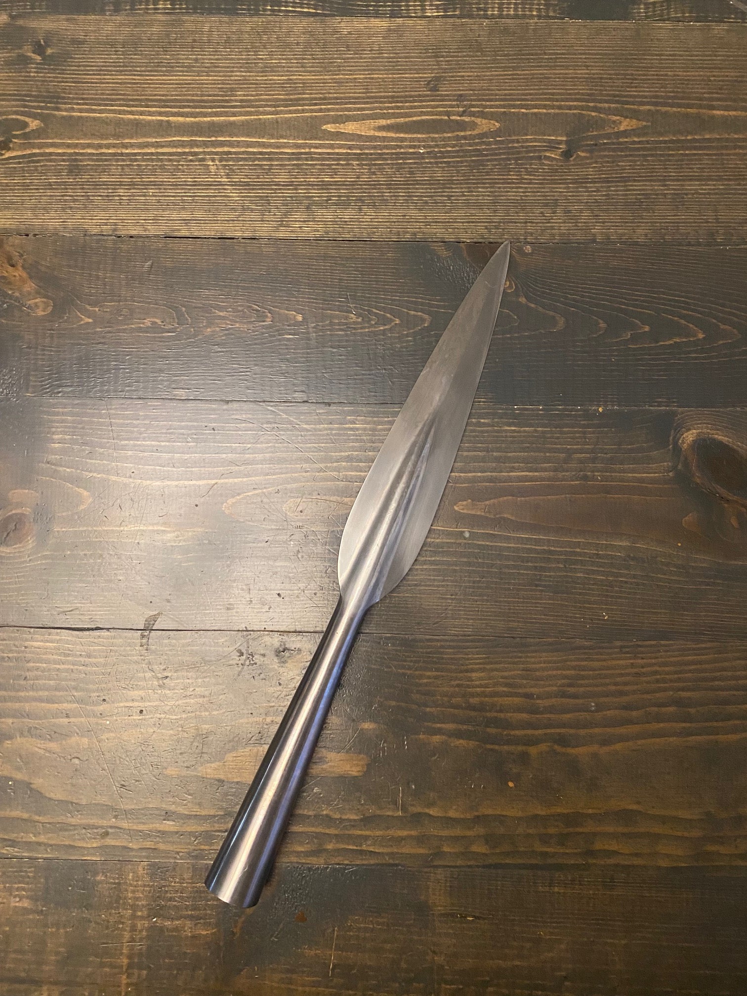 One of the world’s most ancient weapons, the spear was a dominant presence on the field of battle for an amazingly long period of time. This particular blade form was put to use during a wide range of European history by a wide range of cultures, from Ancient Celts and Greeks to well through the Renaissance. The blade is tempered steel and the socket fits a 1-1/4" round pole (not included). Item has an edge that is ready to be sharpened, Shipping is $10